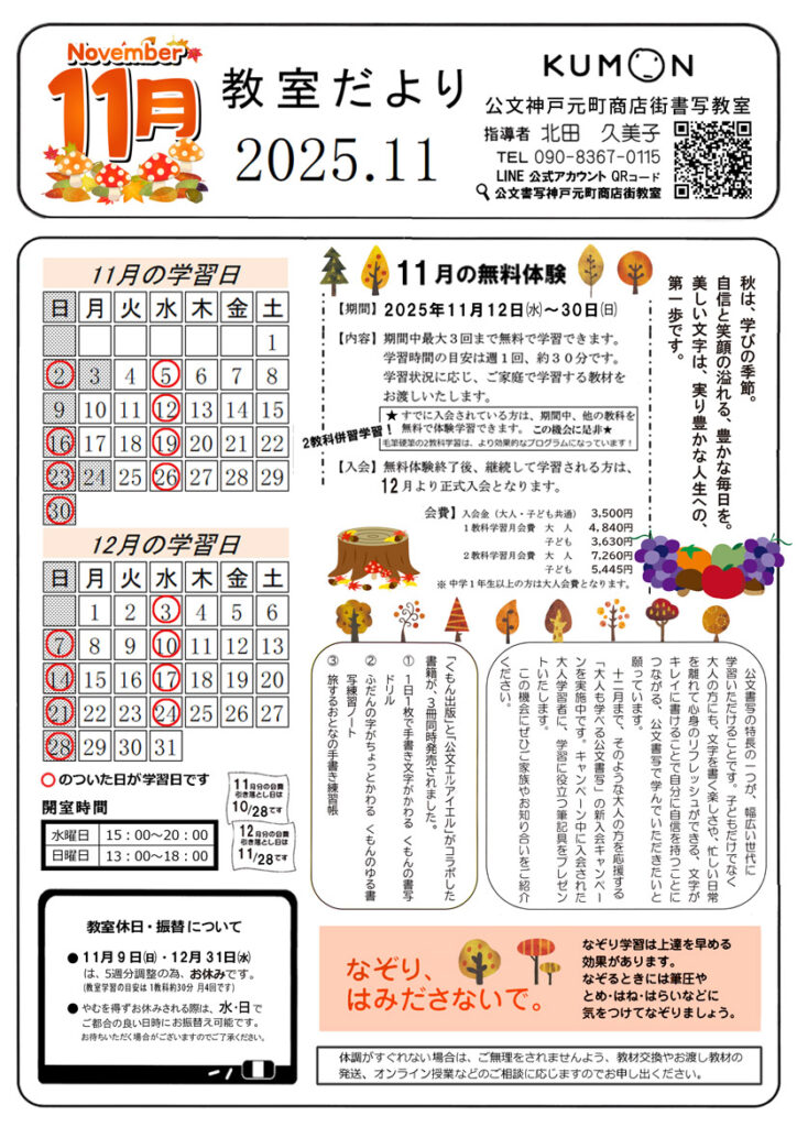 KUMON【教室だより2025.11】公文神戸元町商店街書写教室